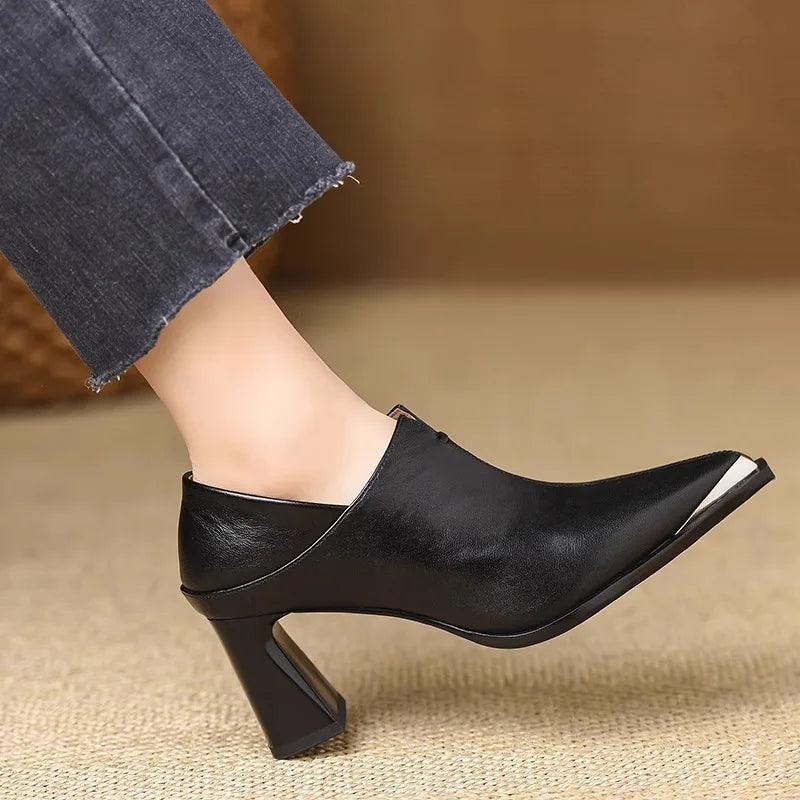 El tacón grueso proporciona un soporte firme y cómodo, permitiendo largas jornadas sin sacrificar la elegancia. Cada detalle está pensado para brindar seguridad al caminar.