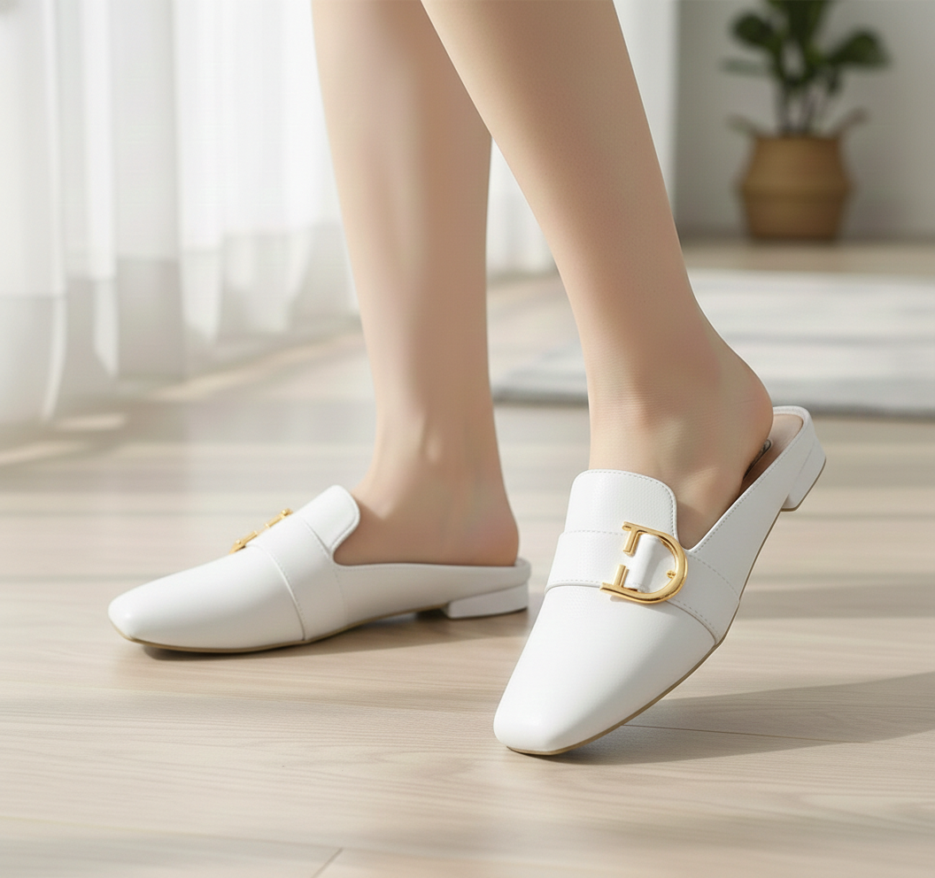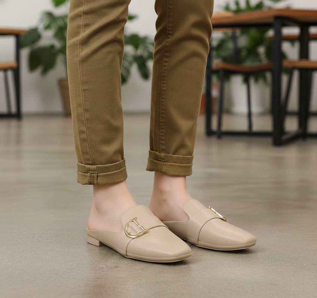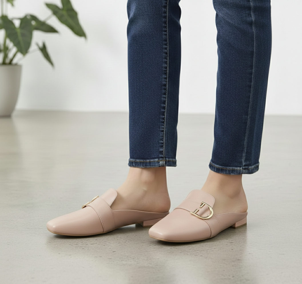 El herraje dorado que cruza el empeine simboliza los candados de los tesoros antiguos guardados en el valle. Este detalle metálico actúa como un ancla visual, elevando la simplicidad del zapato a una categoría de joya arquitectónica. Es el toque de opulencia necesario para romper la monotonía de cualquier conjunto moderno.