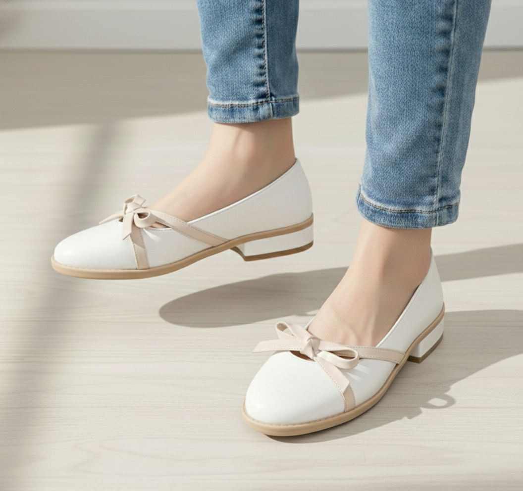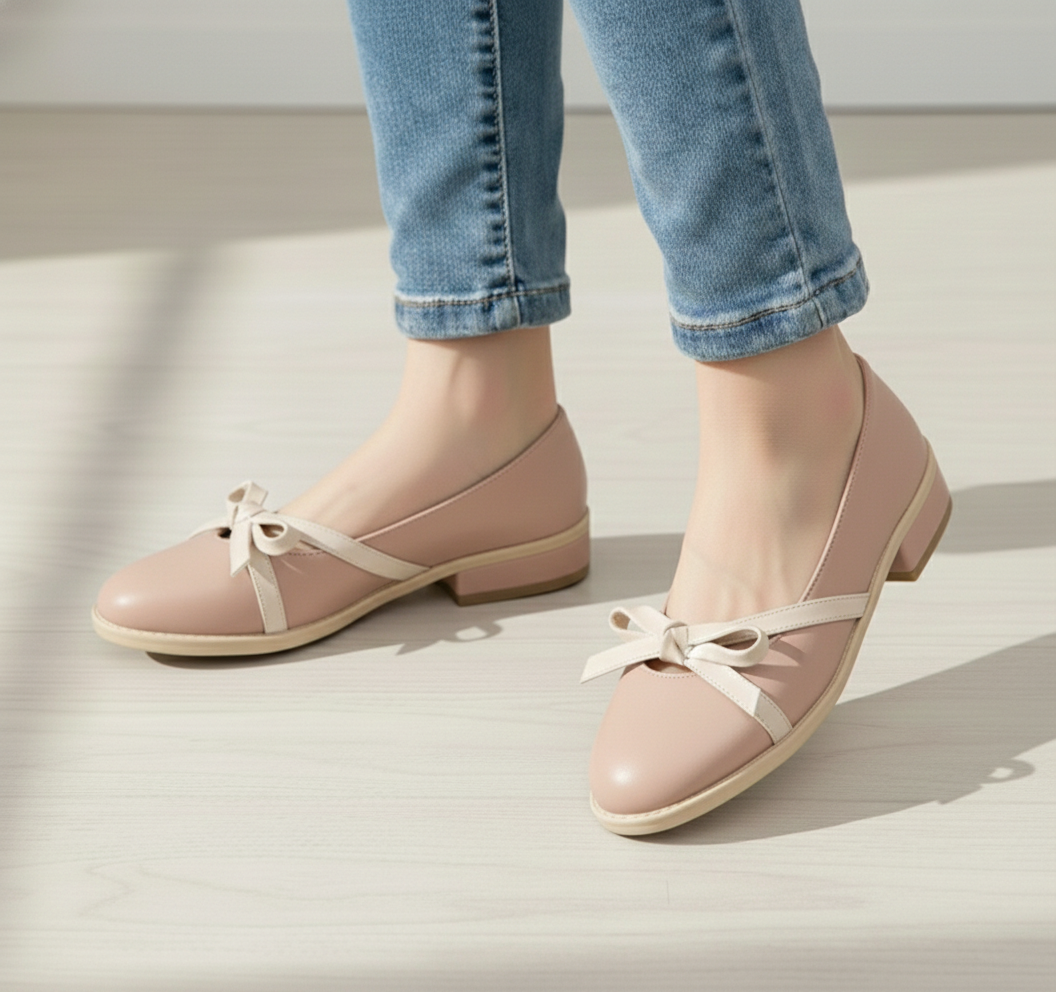 El lazo frontal aporta un toque femenino y armonioso que rompe la simplicidad del calzado con un gesto elegante. Las líneas suaves y la silueta redondeada hacen que destaque sin necesidad de elementos excesivos.