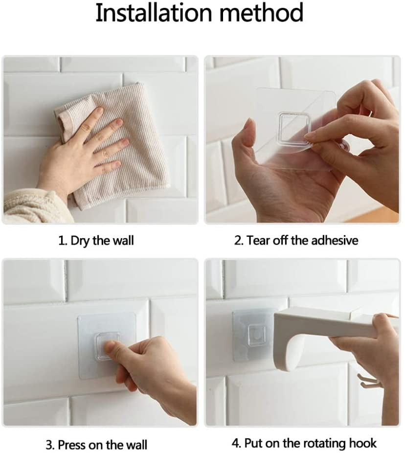 • Fácil de instalar】: los ganchos de cocina giratorios con el adhesivo rectangular sin rastros se pueden instalar directamente en la pared de su cocina sin necesidad de clavar y perforar, y no dañarán sus paredes, ya que soportarían un peso de hasta 13 lb y duras Para pelar.